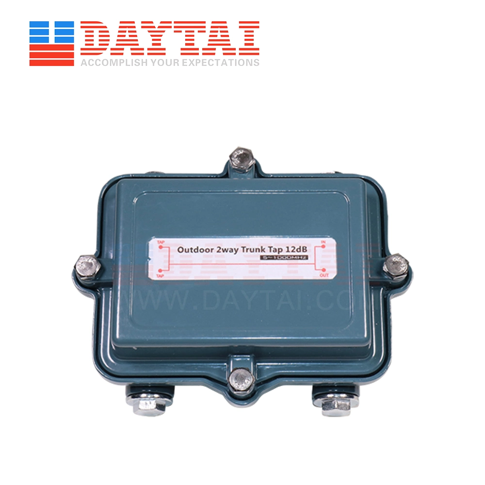2 Way CATV Sub-trunk tap,4dB,8dB,11dB,14dB,17dB,20dB,23dB,26dB,29dB,32dB,35dB,(it is optional),5-1000Mhz,RFI>110dB,in-out ports power pass 10A,in&out UNEF 5/8" port, tap ports F female port.